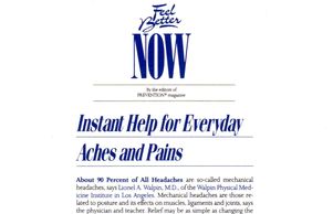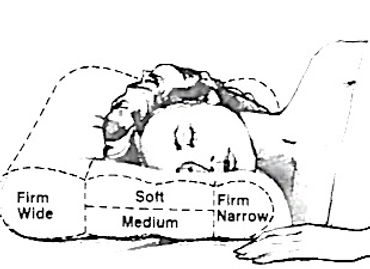 "One specially designed pillow, developed by Lionel Walpin, MD of Cedars-Sinai Medical Center in Los Angeles, provides four different combinations of head and neck support. The central part of the pillow, where the head rests is soft on one side and medium-firm on the other; on each side, the upper border offers a narrow firm support for the neck, while the opposite border provides a wide, firm neck support."